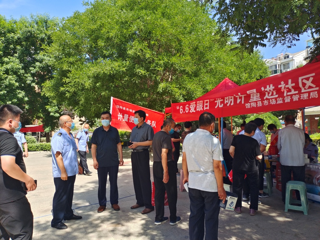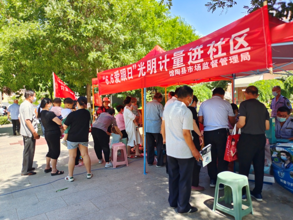 為深入開展黨史學習教育活動,積極踐行“我為群眾辦實事”要求,館陶縣市場監(jiān)督管理局在2022年6月6日第27個全國“愛眼日”到來之際,走進溫泉花園小區(qū)開展守護“晴”彩視界,點亮“光”明未來為主題的計量惠民服務活動。此次活動大力宣傳關注全年齡段全生命期眼健康的重要意義。重點關注兒童青少年、老年人兩個重點人群,宣傳普及眼健康科學知識,倡導“每個人都是自己健康第一責任人”的理念,增強群眾愛眼護眼意識。