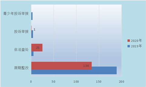 根據(jù)檢查中發(fā)現(xiàn)的問題,全省對(duì)134家眼鏡配制場(chǎng)所要求限期整改,比2019年減少了55家;全省對(duì)25家眼鏡配制場(chǎng)所進(jìn)行了查處,比2019年增加了20家;全省處理眼鏡配制方面的投訴舉報(bào)1件,其中處理涉及兒童青少年投訴舉報(bào)0件,分別比2019年減少3件。