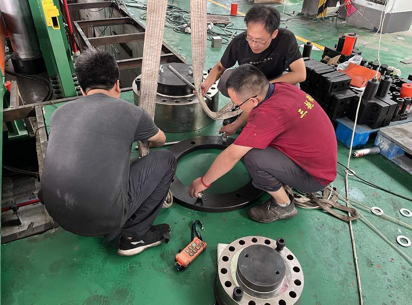 入夏以來,各地氣溫急劇上升。8月15日,在浙江臺(tái)州天鐵集團(tuán),湖北省計(jì)量院力學(xué)所計(jì)量人員正在檢定3500t超大力值試驗(yàn)機(jī),為企業(yè)解決生產(chǎn)難題。密不透風(fēng)的廠房里,最高氣溫一度超過40℃,讓人難耐。然而,高溫反而令計(jì)量人員打起了十足的精神,他們?nèi)螒{汗水打濕衣裳、滴入眼睛,依舊有條不紊地嚴(yán)格按照規(guī)程開展檢定工作。檢定現(xiàn)場(chǎng),計(jì)量人員說:“越是環(huán)境艱苦,越要在崗位上認(rèn)真做好自己的工作!天氣很熱,手上胳膊上全是汗,我們?cè)谡{(diào)試設(shè)備時(shí)要特別小心注意,保證安全。”