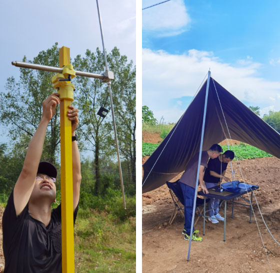 入夏以來,湖北多地頻發(fā)高溫紅色預(yù)警,極端高溫天氣對(duì)戶外現(xiàn)場(chǎng)檢測(cè)來說是一個(gè)極大的考驗(yàn)。8月17日,湖北省計(jì)量院電磁兼容與安規(guī)所檢測(cè)人員對(duì)嘉魚通用機(jī)場(chǎng)進(jìn)行電磁環(huán)境現(xiàn)場(chǎng)檢測(cè)。檢測(cè)地點(diǎn)地處野外,太陽光線強(qiáng)烈,氣溫高達(dá)42℃,且方圓幾公里內(nèi)沒有人煙。檢測(cè)人員克服種種困難,在高溫、日曬下快速搭建起簡(jiǎn)易現(xiàn)場(chǎng)檢測(cè)實(shí)驗(yàn)室,迅速開始電磁輻射數(shù)據(jù)現(xiàn)場(chǎng)測(cè)量工作。為保證項(xiàng)目建設(shè)進(jìn)度,他們放棄午休,在極端高溫戶外環(huán)境下,馬不停蹄地對(duì)一個(gè)又一個(gè)觀測(cè)點(diǎn)展開測(cè)量,保障了國家重點(diǎn)建設(shè)項(xiàng)目的順利進(jìn)行。