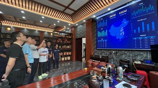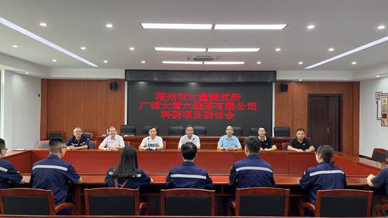 ↑市計(jì)量所所長(zhǎng)、書(shū)記鄧若棟在科研項(xiàng)目合作研討會(huì)上對(duì)廣西大營(yíng)六堡茶有限公司的數(shù)字化智能化茶園及生產(chǎn)線建設(shè)進(jìn)行技術(shù)指導(dǎo)