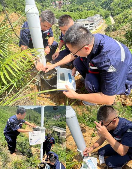 ↑市計(jì)量測(cè)試所黨員專家團(tuán)隊(duì)在數(shù)字化茶園免費(fèi)檢定溫度傳感儀、酸度計(jì)等計(jì)量器具