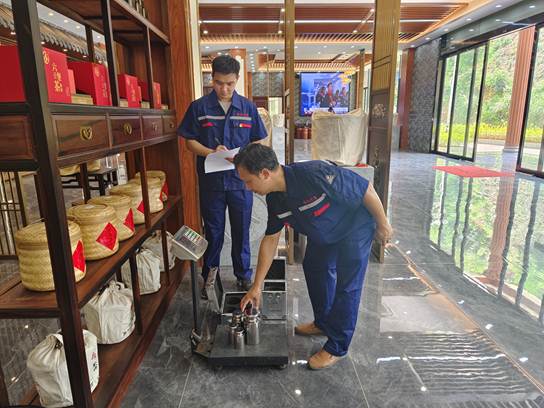 ↑在廣西大營(yíng)六堡茶有限公司開(kāi)展“計(jì)量有溫度?助企加速度”黨建品牌活動(dòng)