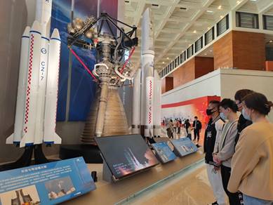 在參觀長征七號火箭系統(tǒng)的過程中,大家了解到,運(yùn)載火箭作為太空探索的運(yùn)載工具,其有著,“運(yùn)載能力有多大,太空探索舞臺(tái)就有多大”的重要作用。中國航天人在運(yùn)載火箭的研究設(shè)計(jì)中不斷探索,艱苦奮斗,取得了長征二號F、長征七號、長征五號B運(yùn)載火箭以及新一代載人運(yùn)載火箭的成功建設(shè),火箭整體技術(shù)越來越成熟,火箭發(fā)射所需要的周期也越來越短,。成員們?yōu)椴粩嗟苌该桶l(fā)展的運(yùn)載火箭系統(tǒng)建設(shè)深深折服,為中國航天的自主創(chuàng)新成果感到無比自豪。