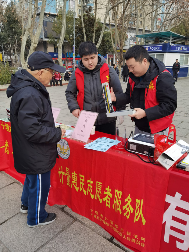 在活動(dòng)現(xiàn)場(chǎng),十堰市計(jì)量所青年志愿者們發(fā)放民生計(jì)量知識(shí)宣傳冊(cè),講解“民用三表”(水表、電能表、燃?xì)獗恚┮约俺鲎廛囉?jì)價(jià)器、燃油加油機(jī)等常見計(jì)量器具的相關(guān)常識(shí)。在講解過程中,現(xiàn)場(chǎng)的一位市民朋友說到:“我知道,你們是搞量值傳遞和溯源的,你們的工作很重要,很了不起呀……”。活動(dòng)累計(jì)發(fā)放宣傳冊(cè)200余份,現(xiàn)場(chǎng)檢定血壓計(jì)50余臺(tái)、電子秤60余臺(tái)。