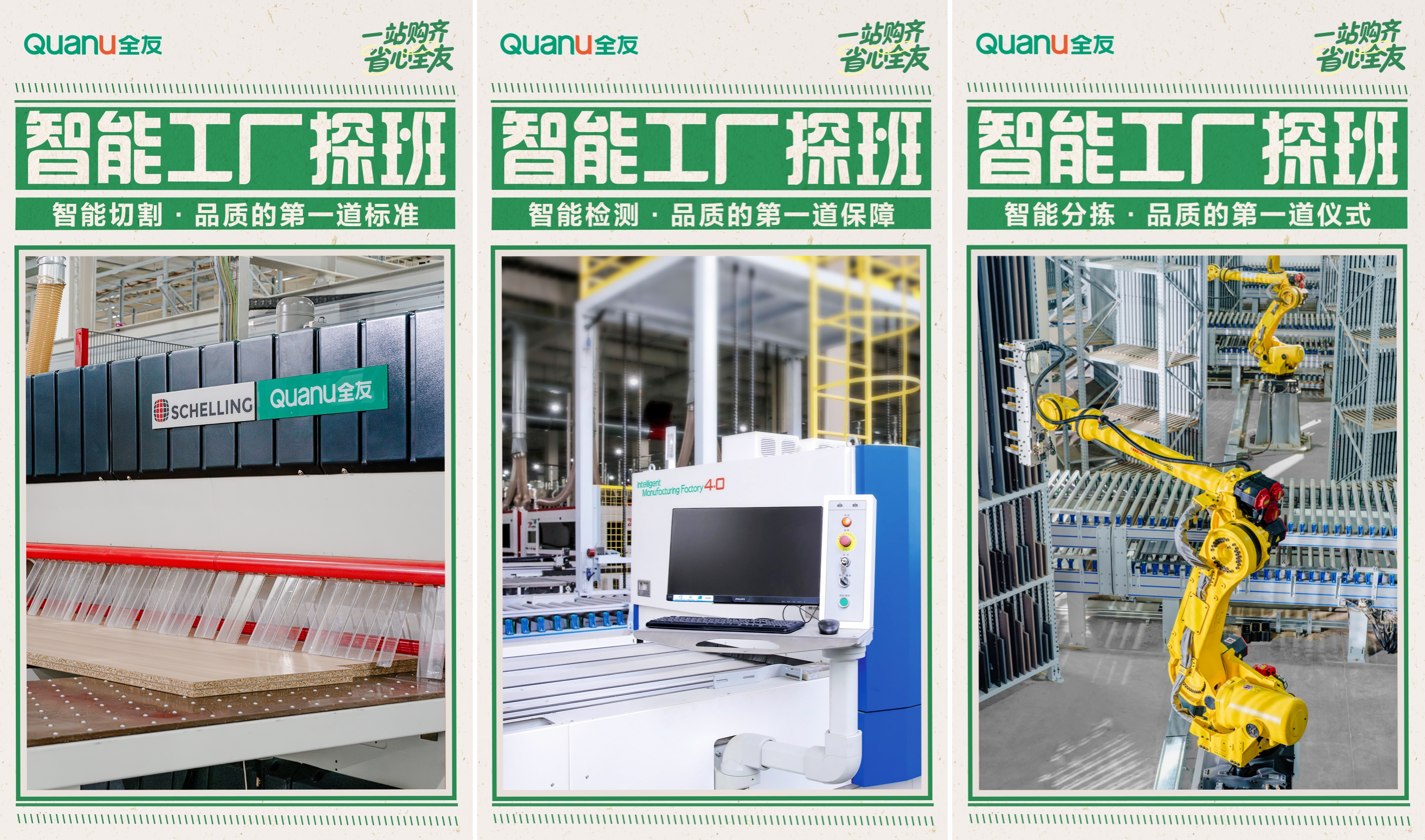 品質(zhì)方面,全友打造綠色智造4.0工廠,配備全球先進(jìn)設(shè)備,通過(guò)數(shù)字化應(yīng)用實(shí)現(xiàn)產(chǎn)品全流程智能化、標(biāo)準(zhǔn)化生產(chǎn)。始終堅(jiān)守環(huán)保健康理念,嚴(yán)選優(yōu)于國(guó)家環(huán)保標(biāo)準(zhǔn)的板材并加入抗菌工藝,與德國(guó)夏特等專業(yè)品牌合作提升產(chǎn)品質(zhì)感。此外,還建立了覆蓋原材料、生產(chǎn)過(guò)程及成品的全方位檢測(cè)體系,每月公示板材環(huán)保檢測(cè)結(jié)果,筑牢品質(zhì)根基。