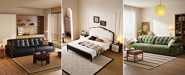全友深度洞察當(dāng)代年輕人審美趨勢(shì),成品線涵蓋沙發(fā)、床墊、軟床、餐桌、墻面家居、櫥柜、衛(wèi)浴、窗簾和板式套房家具等,以多元風(fēng)格設(shè)計(jì)打造高顏值家居產(chǎn)品。從面料肌理、線條比例到色彩搭配,都體現(xiàn)了居家審美與生活情調(diào),可適配奶油風(fēng)、中古風(fēng)、原木風(fēng)、宋式美學(xué)等多種裝修風(fēng)格,滿足消費(fèi)者對(duì)理想美家的向往。