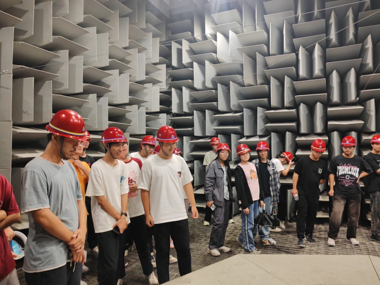 在院客戶服務(wù)大廳計(jì)量文化墻,同學(xué)們學(xué)習(xí)了解計(jì)量歷史文化與計(jì)量基礎(chǔ)知識。隨后,在工作人員的帶領(lǐng)下,師生們分為兩組,實(shí)地參觀了消聲室、混響室、電磁兼容檢測室(十米法)及長度、電學(xué)、力學(xué)、熱工等專業(yè)實(shí)驗(yàn)室。通過技術(shù)人員的講解和現(xiàn)場演示,同學(xué)們不僅對相關(guān)計(jì)量檢測項(xiàng)目的工作原理、各實(shí)驗(yàn)室功能、計(jì)量應(yīng)用領(lǐng)域等有了基本了解,更充分認(rèn)識到計(jì)量在保障國計(jì)民生、支撐經(jīng)濟(jì)社會發(fā)展、促進(jìn)質(zhì)量提升等方面的重要作用。